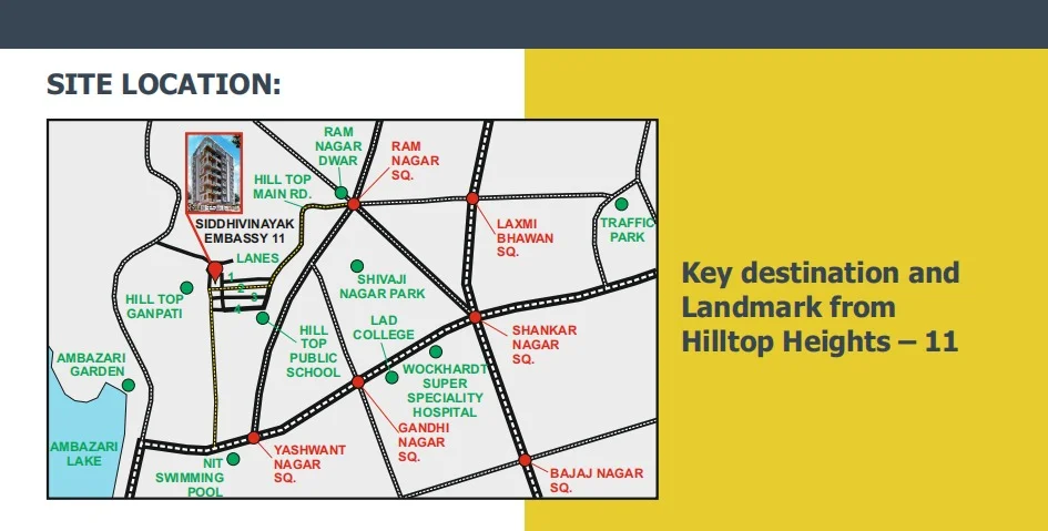 Strategically located, Siddhivinayak Embassy – 10 provides excellent connectivity to metro stations, railway station, hospitals, schools, shopping malls, and the inner ring road, making daily commuting effortless. With close proximity to Krida Square, VR Mall, medical colleges, and major commercial hubs, this project is perfect for both home buyers and real-estate investors in Nagpur. If you are looking for luxury flats in Hanuman Nagar Nagpur or a trusted residential project near Krida Square, Siddhivinayak Embassy – 10 is a smart investment for peaceful and modern urban living.